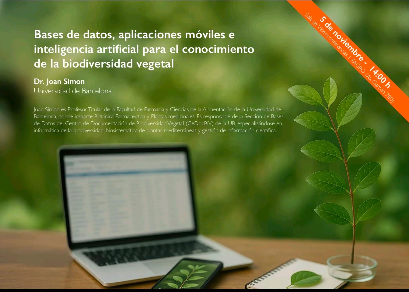 A l'Uruguai, el 6 de novembre va ser invitat a participar en un seminari organitzat pel Dr. Mauricio Bonifacino a la Facultat d’Agronomia de la Universidad de la República a Montevideo. Durant el seminari, es va analitzar com les bases de dades botàniques, les aplicacions mòbils i les eines d’intel·ligència artificial estan transformant la manera com estudiem, documentem i compartim el coneixement sobre les plantes. Des del treball que es fa al Centre de Documentació de Biodiversitat Vegetal (CeDocBiV) de la Universitat de Barcelona, s'ha pogut comprovar com aquestes tecnologies faciliten l’accés a la informació científica i permeten fer arribar el coneixement botànic a un públic cada vegada més ampli.