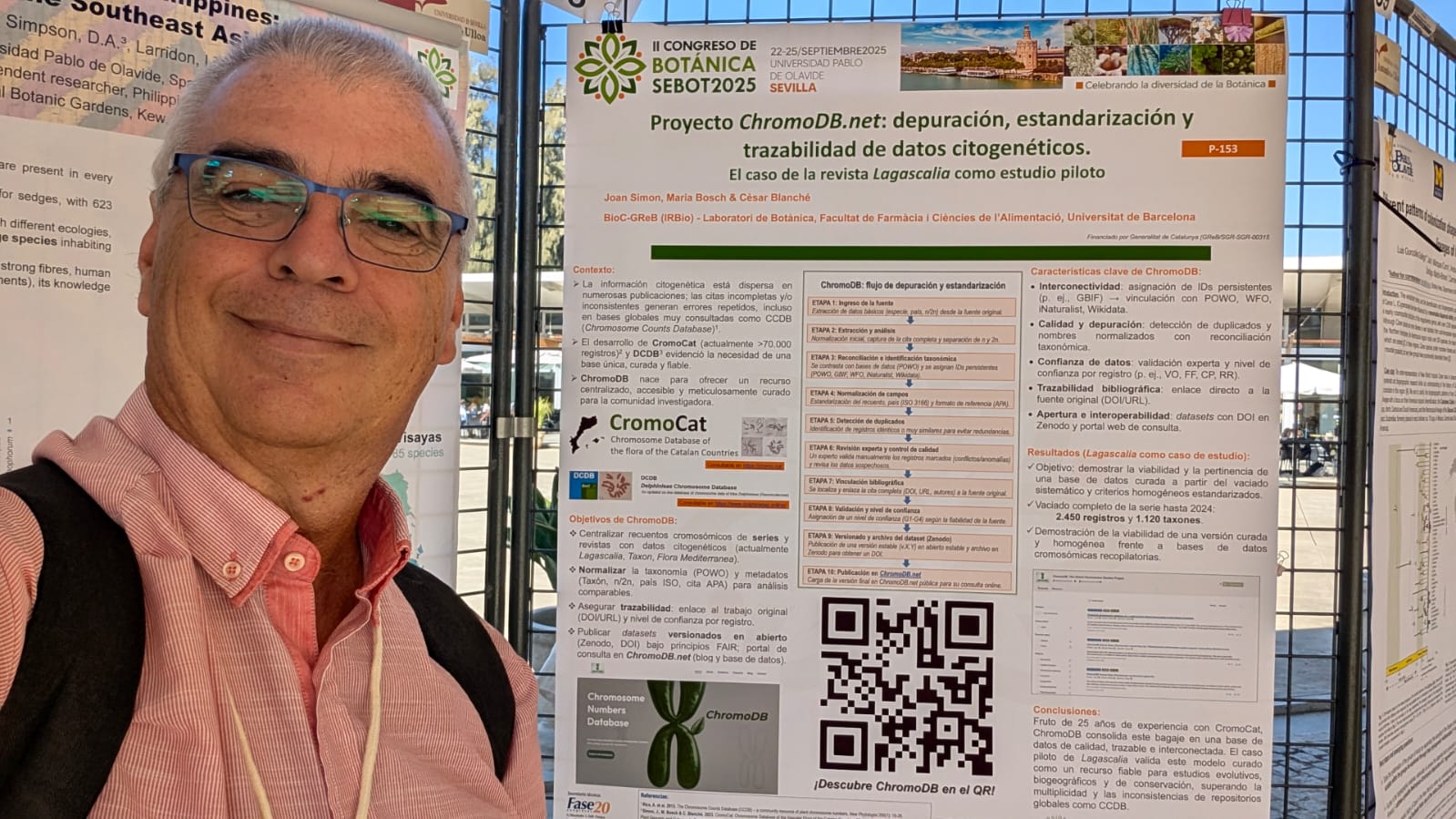 El nostre company Joan Simon acaba de presentar el projecte Chromo-DB al Congrés de Botànica de la SEBOT, que ha tingut lloc del 22 al 25 de setembre a Sevilla, organitzat per la Universidad Pablo de Olavide.