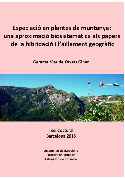 Ahir va tenir lloc a la Facultat de Farmàcia de la UB la lectura de la tesi doctoral de Gemma Mas de Xaxars, investigadora del GReB, amb el títol Especiació en plantes de muntanya: una aproximació biosistemàtica als papers de la hibridació i l'aïllament geogràfic. El treball, dirigit per J. Vallès i T. Garnatje, va obtenir la màxima qualificació.