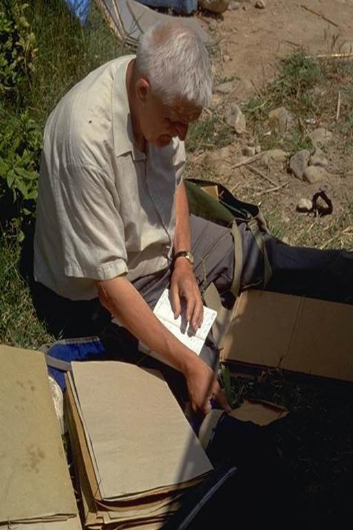J. Lambinon preparant el material recol·lectat al camp (P. Rasmond)