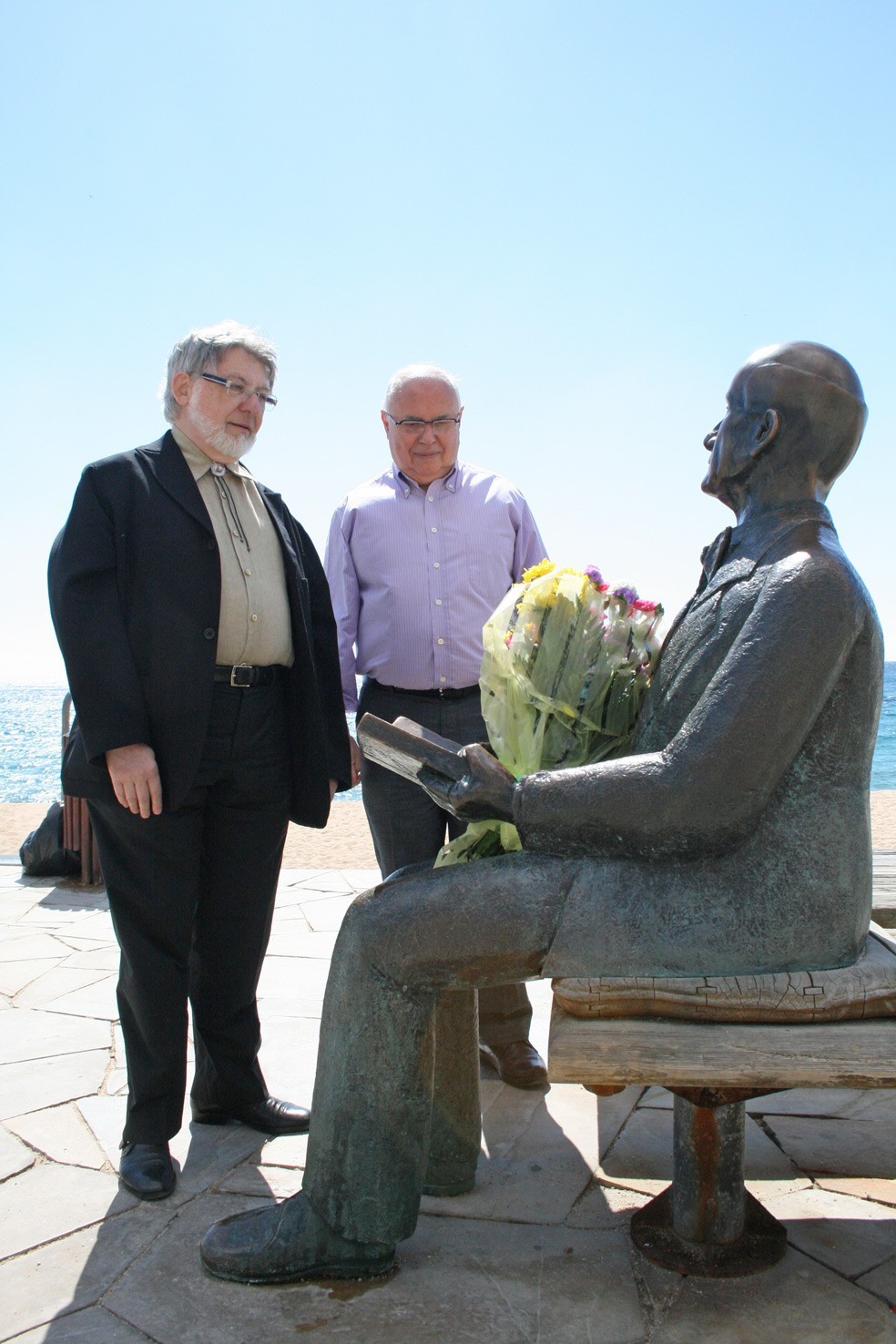Josep M. Camarasa, patró de la FCF, en l'ofrena floral a l'estàtua de Carl Faust, al passeig de Blanes (Foto FCF)
